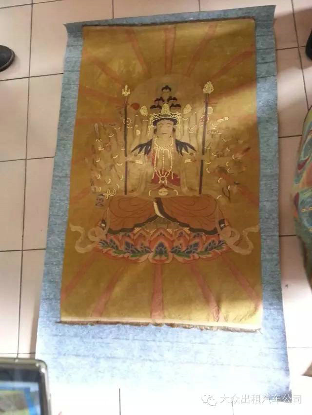 22日全先生来到公司,业务员当着他的面打开了失物,只见是三幅做工细致画面精美的唐卡,据全先生介绍,这是清朝早期的珍贵文物,唐卡是用织出来的绢布作为材料,上面金色部分是用金丝绣上去的并镶有当时就很先进的防伪标识,每幅价值至少100万人民币。取回失而复得的珍贵唐卡后,全先生郑重地送上锦旗,再次对j9九游会好司机涂德成的拾金不昧和优质服务及公司业务员的热情帮助表示了衷心的感谢。