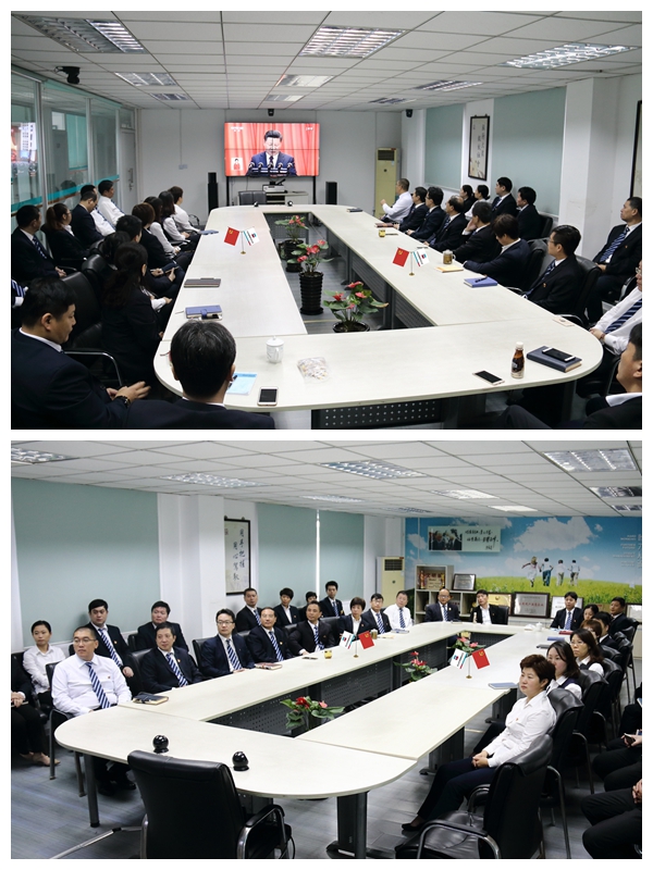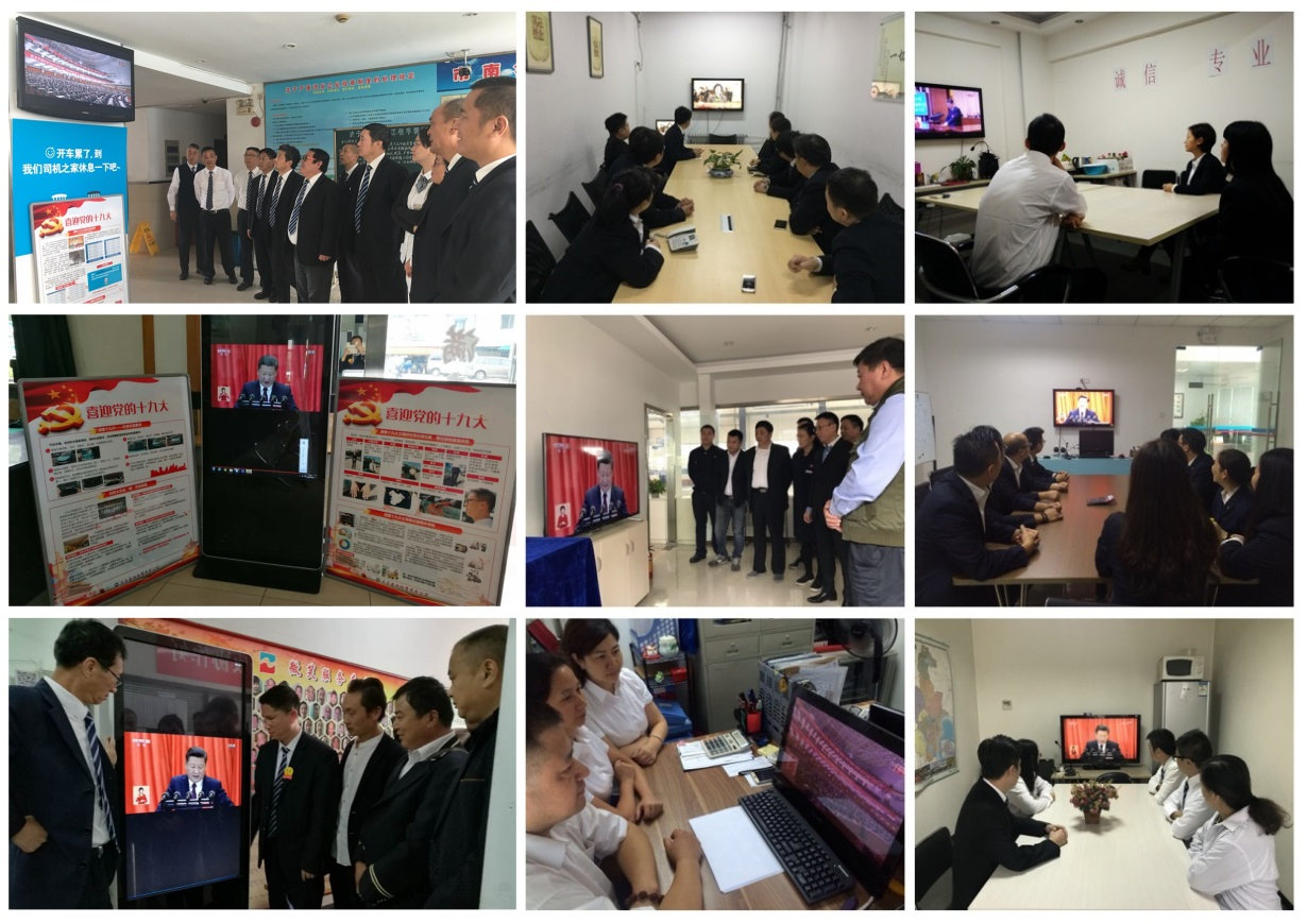 (公司员工汇聚公司大会议室,集中收看十九大开幕式直播盛况)