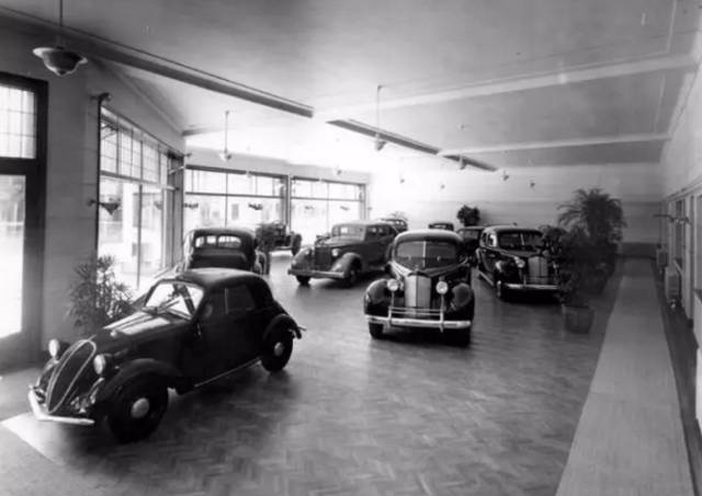 20世纪30年代,马迪车行 的展示区,图中可见一辆美国PACKARD EIGHT型轿车,该品牌创立于1899年,一直主打豪华车系,1959年因经营不善倒闭