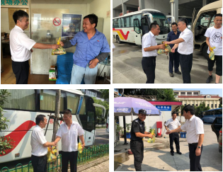 公司领导班子顶着炎炎烈日慰问了长途客运站、修理厂、招行班线等基层单位和一线班组,给一线员工们送去清凉和组织的关心。