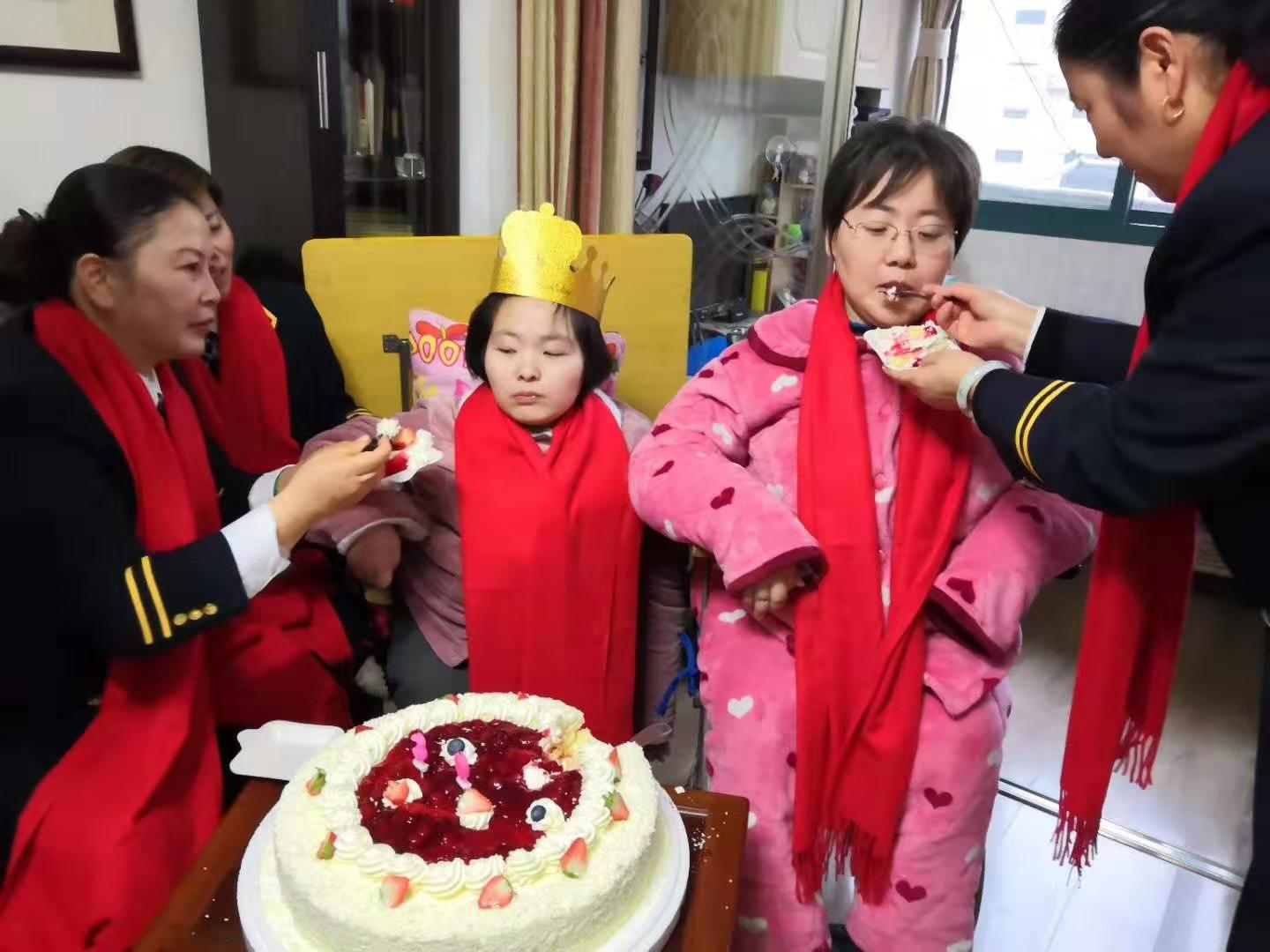 1月21日下午,位于虬江路的渐冻症姐妹寿容君和寿文清家中,一改往日的冷清,显得格外热闹。一群来自j9九游会出租市北公司的的哥的姐们来到她们家中,为妹妹文清过起了生日,并准备了一桌丰盛的团圆饭。而微信群中,的哥们特意为姐妹俩从上海各景区拍摄的视频和照片,让她们在家中感受到上海的年味。