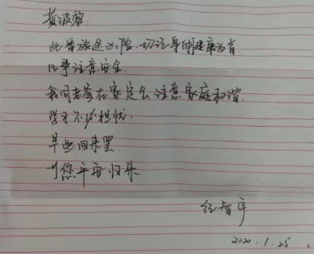 每次想起家人时,黄波黎都会拿出一张别有意义的小纸条反复观看,这次出征武汉时间仓促,甚至都还没来得及叮嘱家人照顾好自己。