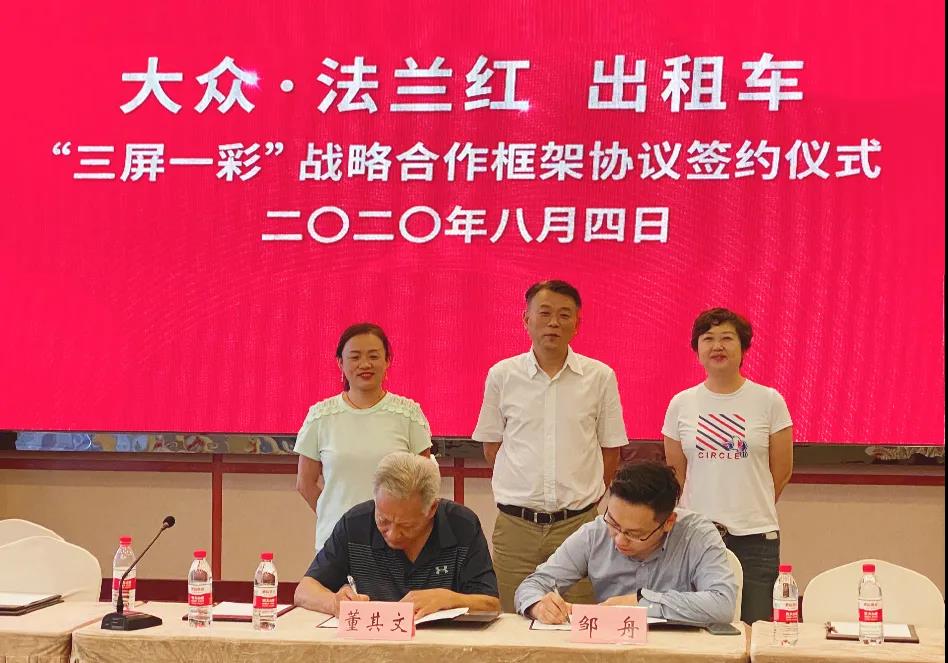 8月4日,j9九游会和法兰红出租车的“三屏一彩”战略合作框架协议签约仪式在江苏太仓举行。